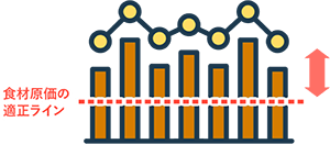 食材データとの連携で原価の変動を素早くキャッチ。